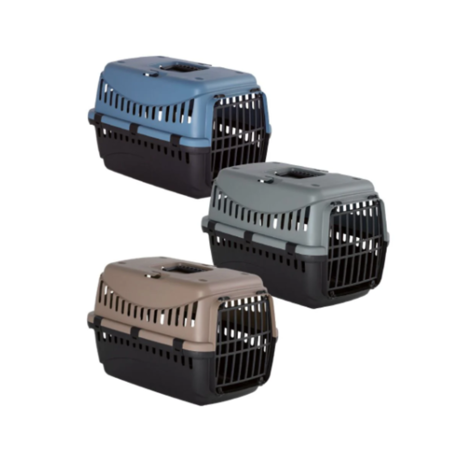Būris dzīvnieku transportēšanai. Plastmasas korpuss; metāla durvis.