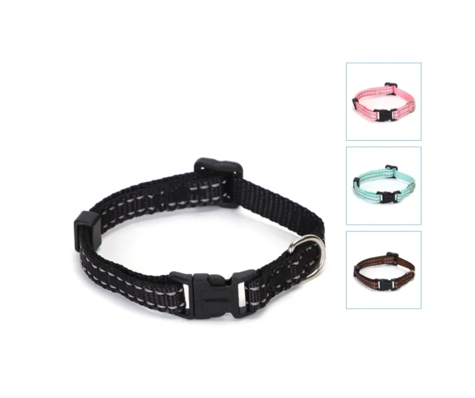 Atstarojoša neilona kakla siskna kaķiem un mazo šķirņu suņiem. Kakla siksna regulējama, ar klipsi un ar metāla gredzenu pavadai.